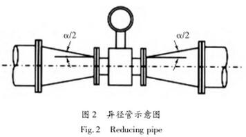 流量計安裝位置的上下游直管段一般遵循前十后五原則。要求前直管段不小于10D,后直管段不小于5D。如果在上游管段注入其他化學(xué)物質(zhì),則容易引起導(dǎo)電。流量計應(yīng)盡可能遠(yuǎn)離主進(jìn)口至少20D(如圖1所示);如果污水流量計的上下游使用減壓管,則減壓管的中心錐角α應(yīng)小于15°