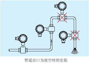 如管道存在非滿管或是出口有放空狀態(tài),傳感器應(yīng)安裝在一根虹吸管上。