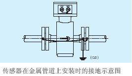 a.傳感器在金屬管道上安裝(金屬管道內(nèi)壁沒有絕緣涂層),按下圖接地。