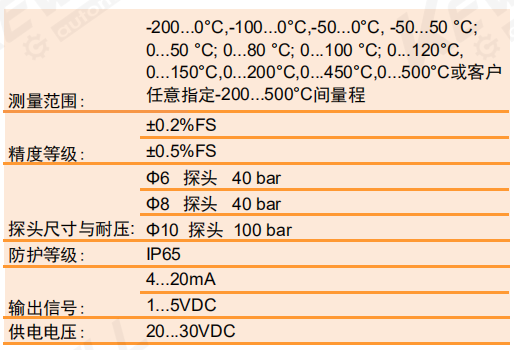 PT100或PT1000 classA鉑熱電阻原理,一體化溫度變送器具有集溫度檢測(cè)與信號(hào)處于一體,標(biāo)準(zhǔn)接插件出線,體積小巧,線性化輸出4~20mA或1~5V標(biāo)準(zhǔn)信號(hào)。