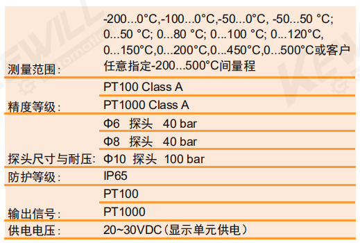 | PT1000輸出 | ||||||||||||||||||
